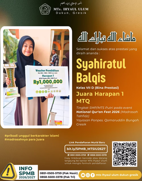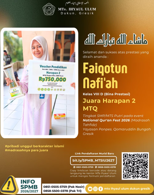 Semoga keberhasilan ini menjadi langkah awal untuk meraih prestasi yang lebih tinggi di masa mendatang dan terus mengharumkan nama MTs Ihyaul Ulum Dukun di tingkat regional maupun nasional.